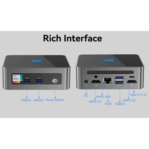 With 2*HDMI 2.0 and 1*Type-C (1.4) interfaces, it supports three-screen 4K display output (60Hz), allowing you to connect multiple monitors at the same time, expand the working space or create a stunning entertainment visual effect. The design of pure copper heat sink and fan ensures that the computer can maintain stable performance during long-term operation, effectively reduces temperature and extends the life of hardware. Whether it is for professional office work, creative design or home entertainment, this mini computer is your ideal choice.
